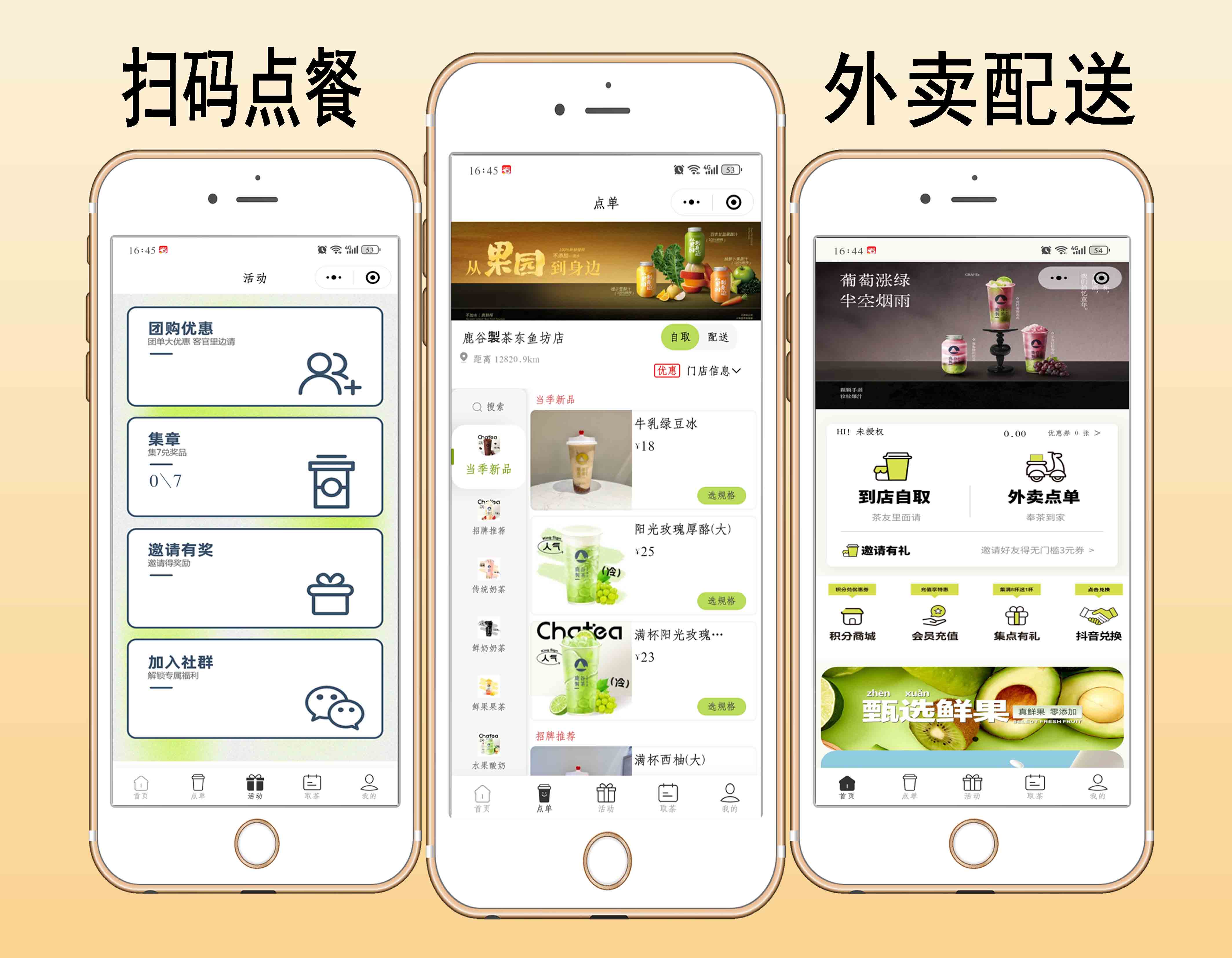 功能包括扫码点餐、后台点餐、优惠券、积分、会员等级、分销、充值、外卖配送、到店取货、一键连接wifi等营销功能